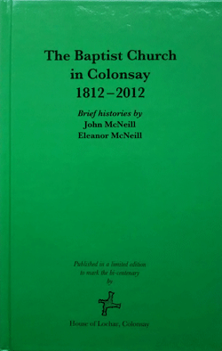 The Baptist Church played a fascinating and honoured role in the life of Colonsay since its foundation by Rev. Dugald Sinclair in 1812. At its centenary a history was written by John McNeill, which was for long out of print; to mark the bi-centenary it was republished, together with a further history written by the late Eleanor McNeill (Machrins Farm). It was published in an edition limited to 200 copies, funded by the subscribers. This little work (46 pp) will inevitably become a family heirloom. £10.00
