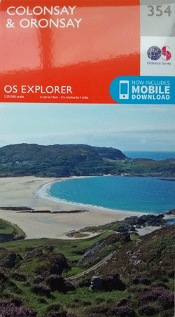 The Ordnance Survey map is the definitive one. You can download maps or you can obtain free tourist maps locally on arrival in Colonsay, but nothing is a substitute for an authentic O.S. map. The Ordnance Survey has been mapping Colonsay since 1880 and the detail is extraordinary - particularly useful for countour detail, land use and boundaries, and for placenames. The only obvious error is the transposition of Meall an Arbhair with Port a' Chrochaire, and the only annoyance is the inclusion of an expanse of featureless sea, coloured plain blue and comprising half the sheet! £8.99